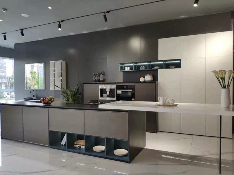 “斜拉式的門頭招牌設(shè)計,可以吸引不同角度的客戶。開放式的產(chǎn)品展示方式,讓消費者一進店就被吸引住。”北斗星這家居門店,258㎡的店面分為集成灶展示區(qū)、櫥柜區(qū)、水槽區(qū)、洽談區(qū)。整體設(shè)計以現(xiàn)代簡約風(fēng)格為主,混搭新中式、美式風(fēng)格,呈現(xiàn)出北斗星高級沉穩(wěn)的輕奢的氣質(zhì)。