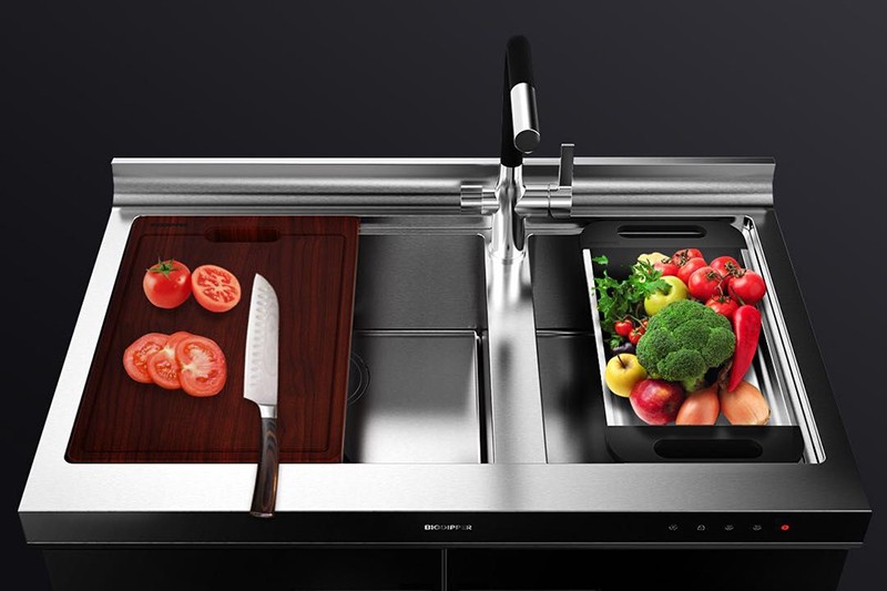 上層“濕”區(qū)域為清洗+切配+瀝水三大基礎(chǔ)功能,給家庭提供一個日常活動空間。