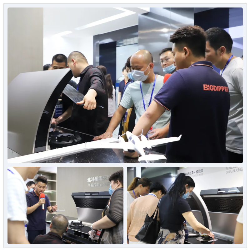展廳現(xiàn)場,工作人員為大家展示了北斗星家族產(chǎn)品標(biāo)志性的創(chuàng)新特性——“天一無縫,就是好擦”的一體式無縫臺面,擦洗無死角,就是好清理!更有“爆炒辣椒無嗆味”,讓在場的所有人士為之贊嘆不已,北斗星集成灶吸煙功能真棒!