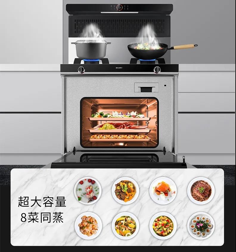 集成灶正是對傳統(tǒng)廚房的革新,不僅油煙吸凈率在99%以上,而且它又是對傳統(tǒng)三件套廚電的創(chuàng)新,將油煙機、燃氣灶、消毒柜/蒸烤箱等功能合為一體,具有獨特的組合方式。集成灶大容量蒸箱:不串味。上面炒菜、下面蒸菜,一鍵烹飪,小白變大廚,30分鐘就能夠輕松搞定一桌菜,不再為漫長的烹飪過程而辛苦勞累!