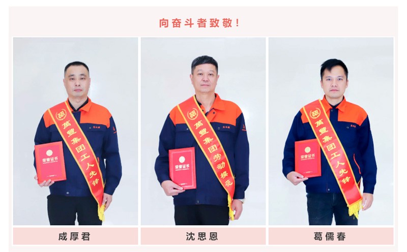 總有這么一群人,以己之力與時間賽跑,與品質(zhì)并行,用“奔跑”的成果來標(biāo)注一個品牌的成長速度。在晚會中,北斗星制造副總經(jīng)理沈思恩先生被授予“萬豐集團勞動楷模”殊榮稱號,營銷中心成厚軍和制造部葛儒春分別被授予“萬豐集團工人先鋒”稱號,鼓勵他們再接再厲,共創(chuàng)輝煌。