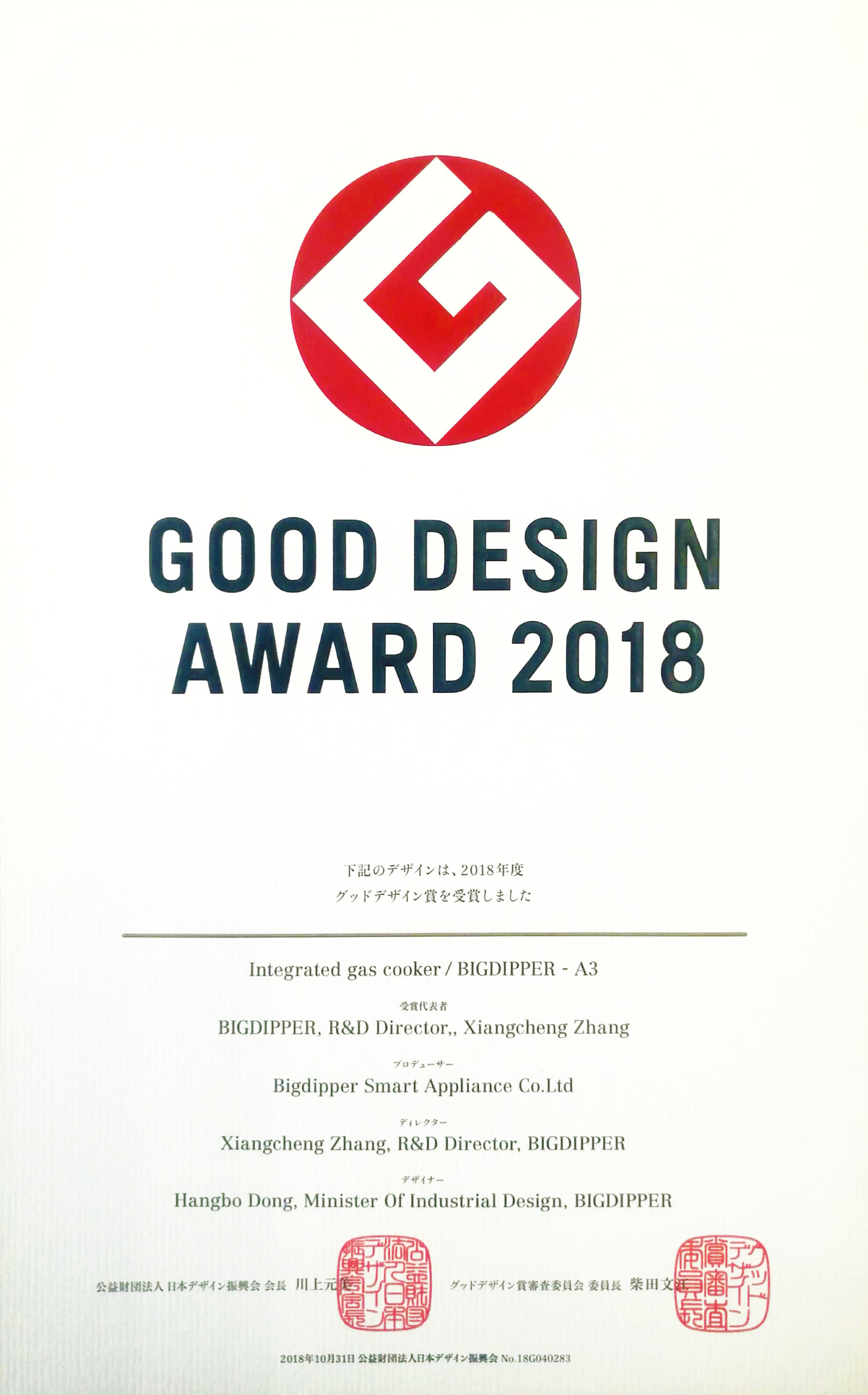 北斗星榮獲全球四大工業(yè)設計獎項之一的國際“G-Mark設計獎”,成為集成灶行業(yè)首個獲此殊榮的品牌,G-Mark素有“東方設計奧斯卡獎”之稱。
