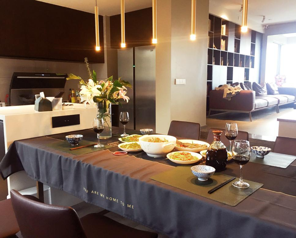 餐廳和廚房是居家生活的重要場(chǎng)所,是一家人忙碌后聚在一起,最有愛(ài)意的時(shí)刻。跟傳統(tǒng)廚房相比,開(kāi)放式廚房是對(duì)室內(nèi)空間結(jié)構(gòu)的改變,它改變的、拆除的不僅僅是一扇門(mén),而是讓廚房發(fā)生的一切在眼前呈現(xiàn),有種參與感。