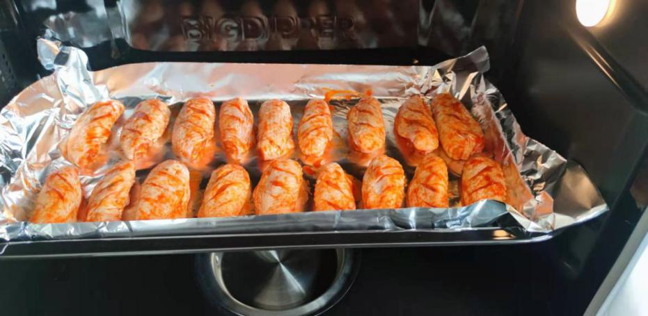 4.北斗星蒸烤集成灶選擇菜譜P15模式,預熱后放進腌制好的雞翅即可;