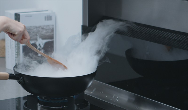 抽油煙機(jī)一般是安裝在頭上,是把油煙聚集到頂部。但是,集成灶采用側(cè)吸下排的方式,運(yùn)用微空氣動(dòng)力學(xué)原理,利用下沉空氣施壓形成負(fù)壓區(qū),把油煙聚集到底部被吸走。采用這種方式,油煙的吸凈率甚至超過(guò)99%。