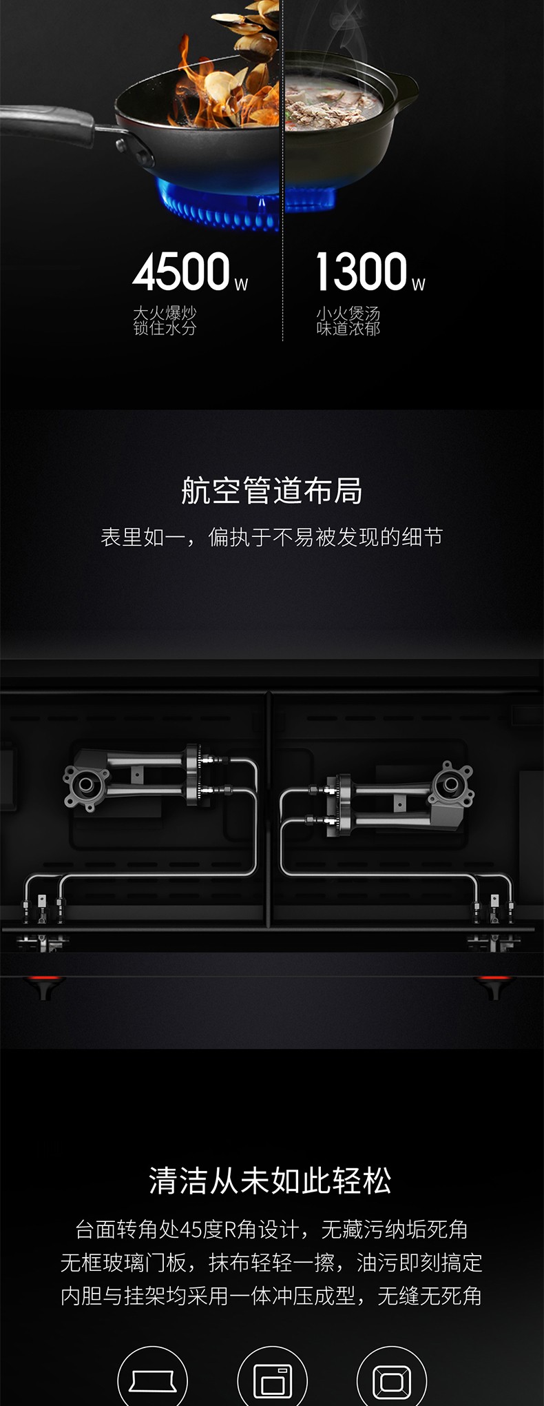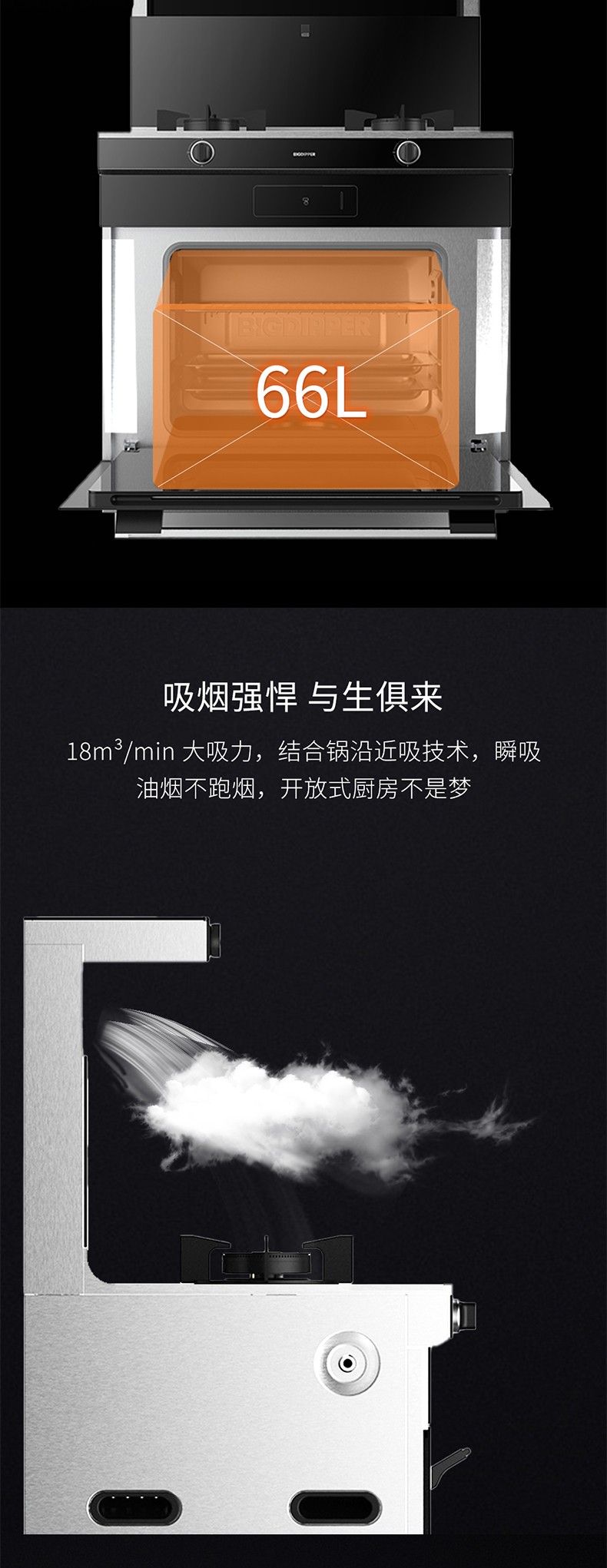 4.5Kw大火力,66L蒸烤大容量