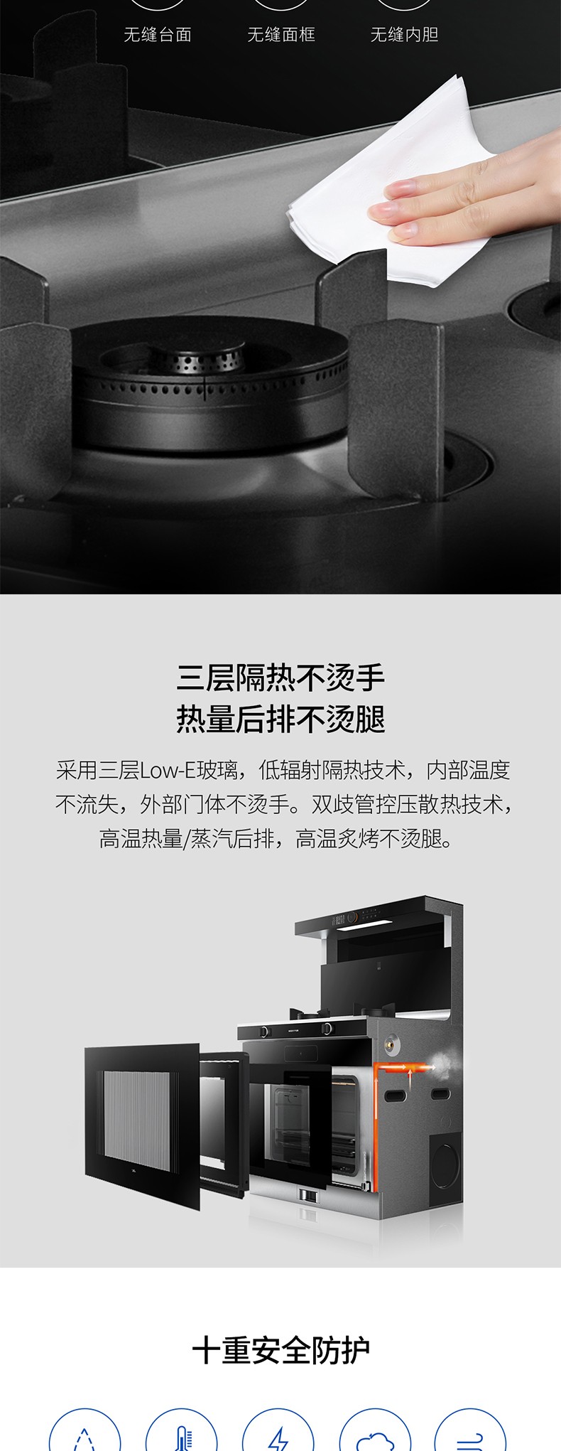 無縫一體臺(tái)面,油污一抹即凈